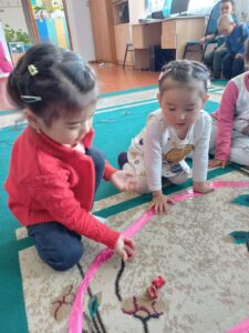 «Бес асық»ойыны. Ойыншы кілемге бес асықты иіріп тастайды, міндетті түрде ханды алады, (Хан асық ойынын жүргізетін негізгі асық болып есептеледі). Ойыншы ханды жоғарыға лақтырып, кілемде жатқан асықтардың бірін алып, лақтырған ханды қағуы керек. Хан қайта жоғары лақтырылып, кілемдегі шашылған асықтардың екіншісі, кейін үшінші, төртінші алынады.